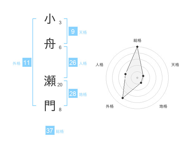 小舟 瀬門さんの総格は37画の5点!