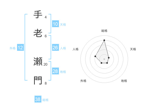 手老 瀬門さんの総格は38画の4点!