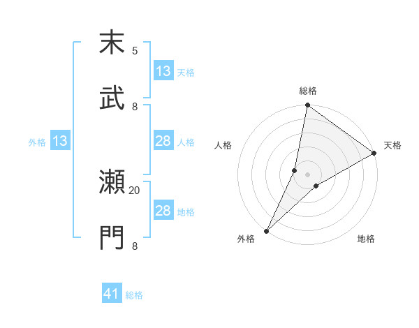 末武 瀬門さんの外格は13画の5点!