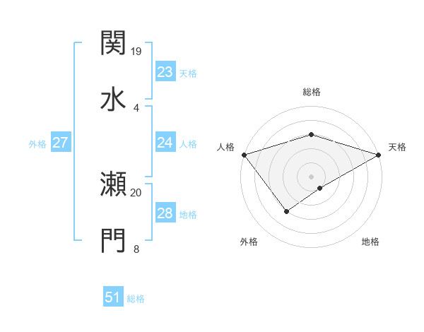 関水 瀬門さんを姓名の画数から五運を鑑定