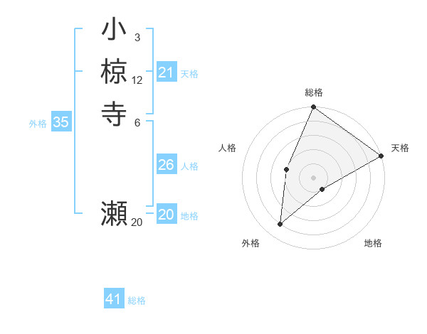 小椋寺 瀬さんの天格は21画の5点!