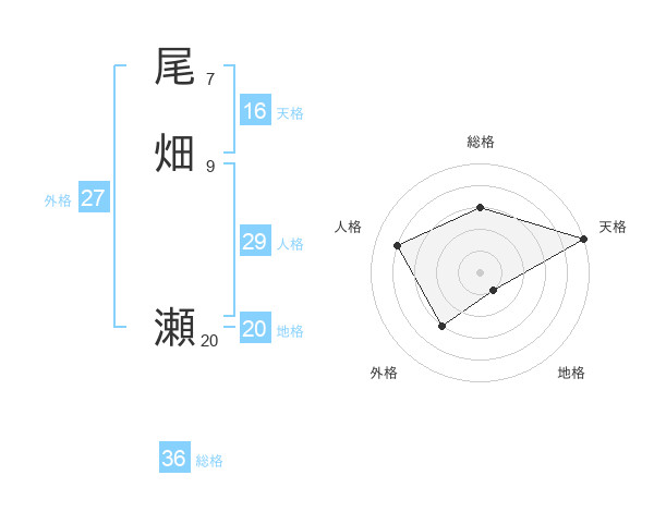 尾畑 瀬さんの総格は36画の3点!