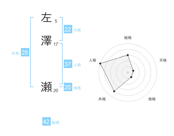 左澤 瀬さんの天格は22画の1点!