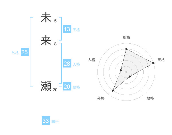 未来 瀬さんの総格は33画の4点!