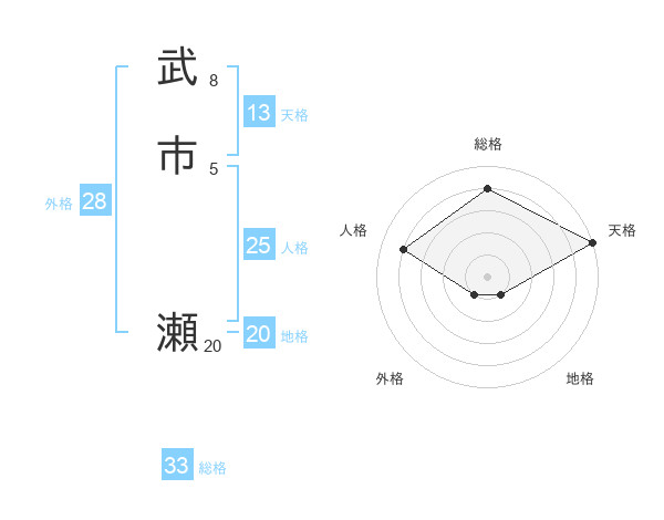 武市 瀬さんの総格は33画の4点!