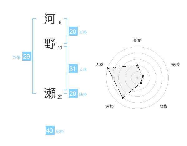 河野 瀬さんの外格は29画の4点!