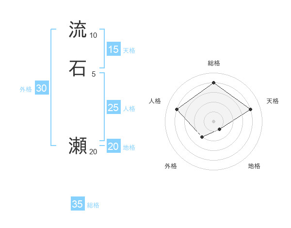 流石 瀬さんの総格は35画の4点!