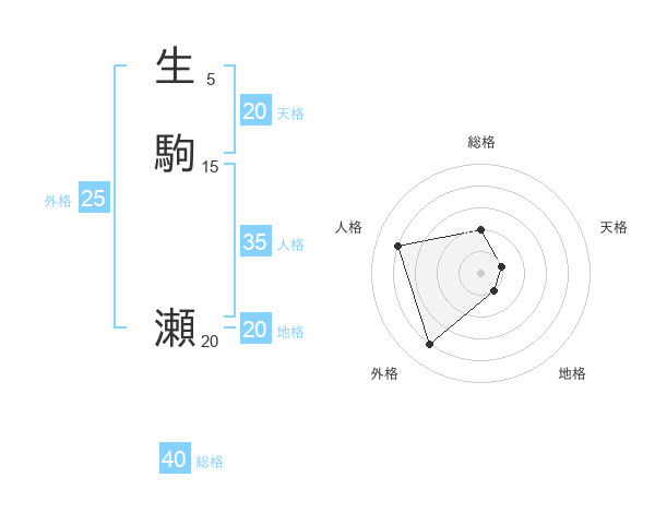 生駒 瀬さんを姓名の画数から五運を鑑定