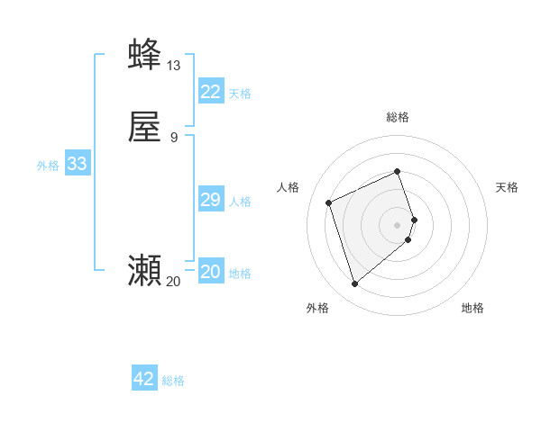 蜂屋 瀬さんの地格は20画の1点!