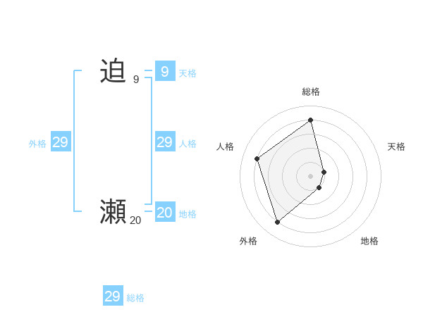 迫 瀬さんの外格は29画の4点!