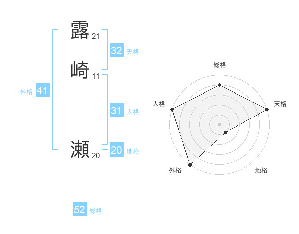 露崎 瀬さんの総格は52画の4点!
