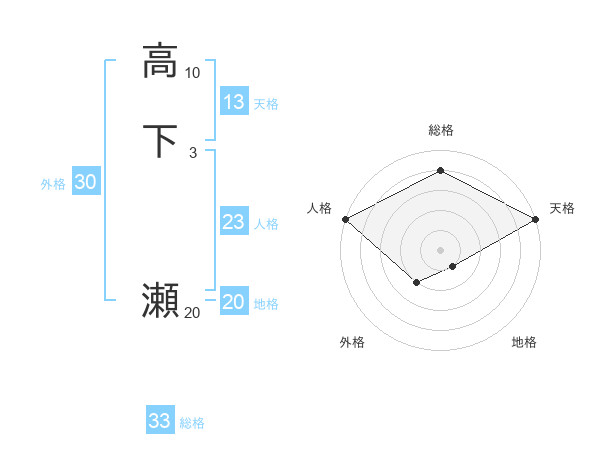 高下 瀬さんの天格は13画の5点!