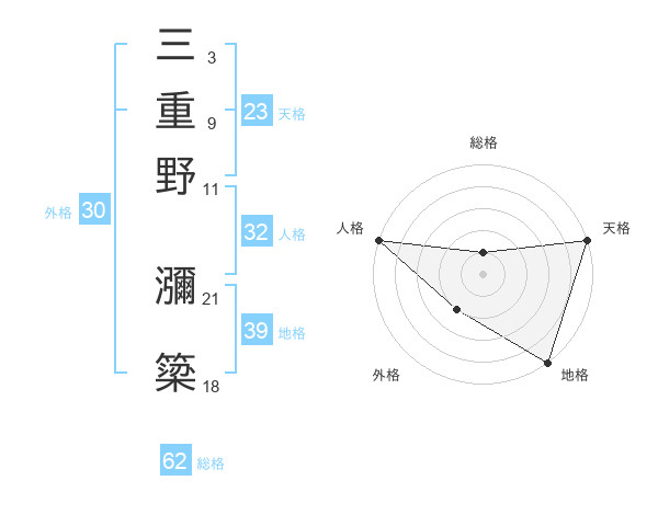 三重野 瀰簗さんを姓名の画数から五運を鑑定