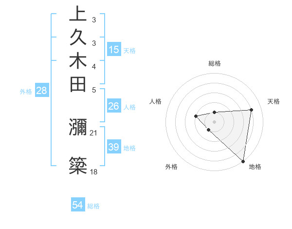 上久木田 瀰簗さんを姓名の画数から五運を鑑定