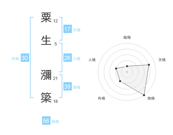 粟生 瀰簗さんを姓名の画数から五運を鑑定