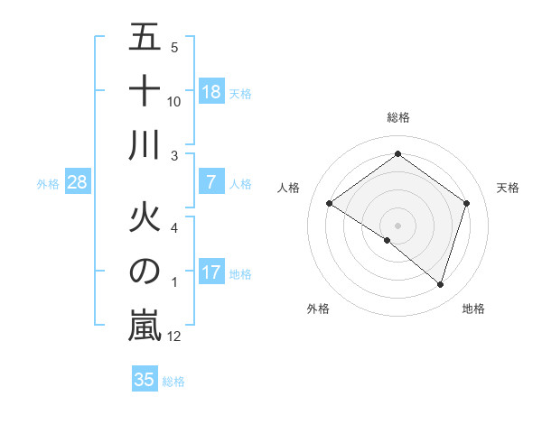 五十川 火の嵐さんの総格は35画の4点!