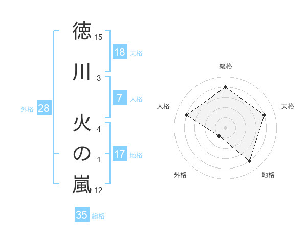 徳川 火の嵐さんを姓名の画数から五運を鑑定