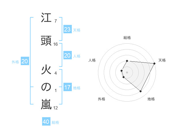 江頭 火の嵐さんの天格は23画の5点