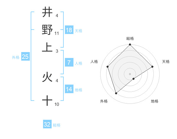 井野上 火十さんの総格は32画の5点