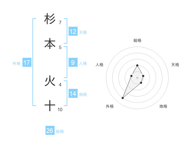 家系が持つ宿命的な運勢を表します。祖先から受け継いだ苗字ですので自分の力が及びません。家柄を象徴します。