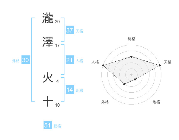 瀧澤 火十さんを姓名の画数から五運を鑑定