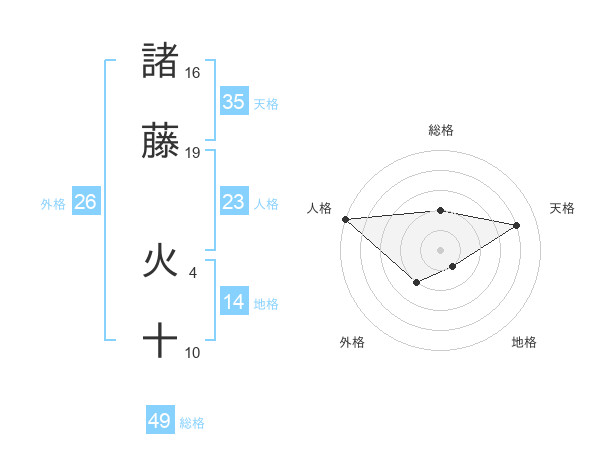 諸藤 火十さんを姓名の画数から五運を鑑定