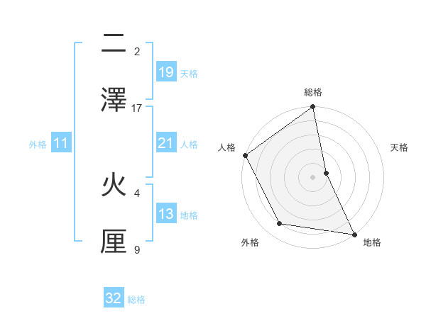 二澤 火厘さんを姓名の画数から五運を鑑定