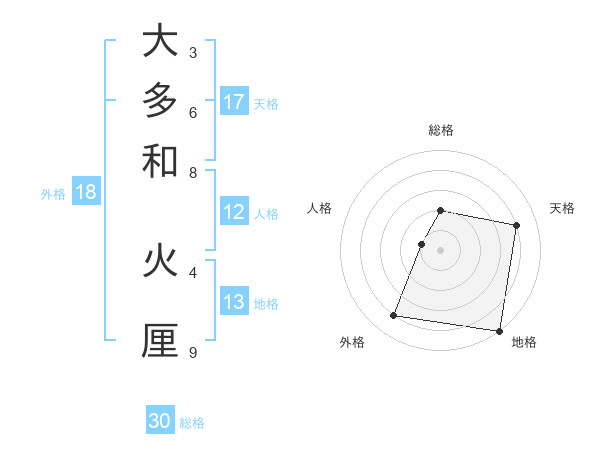 大多和 火厘さんを姓名の画数から五運を鑑定
