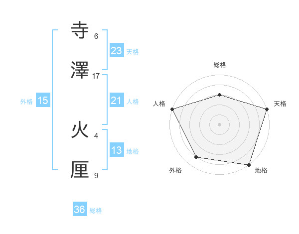 寺澤 火厘さんの天格は23画の5点!