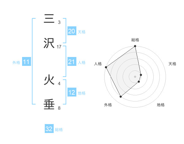 三沢 火垂さんを姓名の画数から五運を鑑定