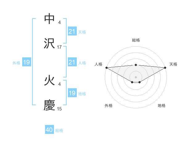中沢 火慶さんの人格は21画の5点!