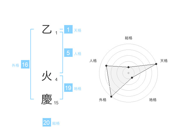 乙 火慶さんの総格は20画の1点!