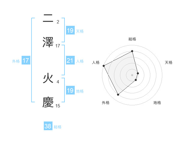 二澤 火慶さんの総格は38画の4点!