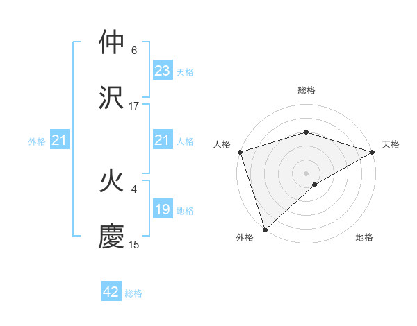 仲沢 火慶さんを姓名の画数から五運を鑑定