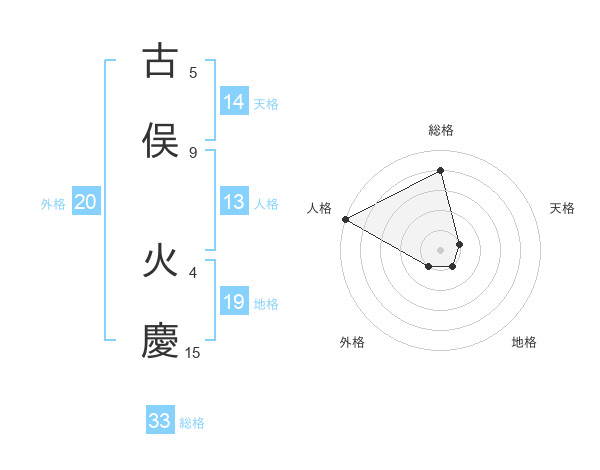 古俣 火慶さんの総格は33画の4点!