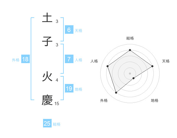 土子 火慶さんの総格は25画の4点!