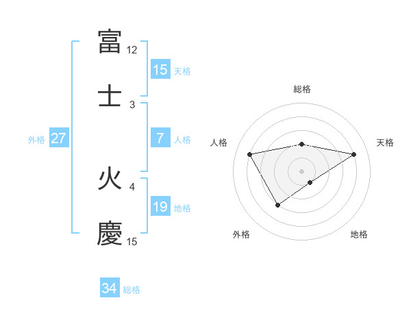 富士 火慶さんの総格は34画の2点!