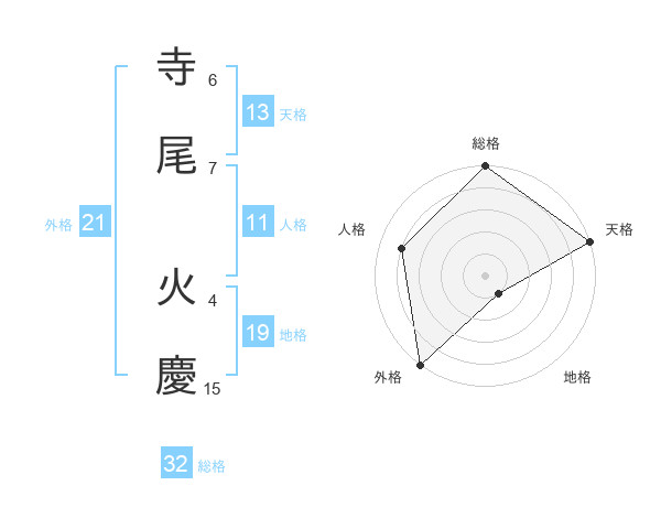 寺尾 火慶さんの総格は32画の5点!