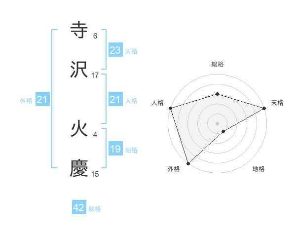 寺沢 火慶さんの外格は21画の5点!