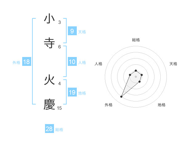 小寺 火慶さんを姓名の画数から五運を鑑定
