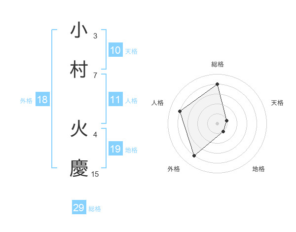 小村 火慶さんの総格は29画の4点!