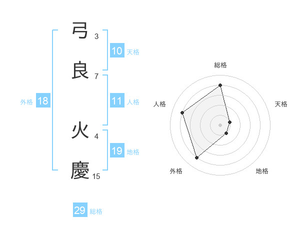 弓良 火慶さんを姓名の画数から五運を鑑定