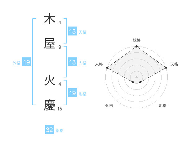木屋 火慶さんの総格は32画の5点!