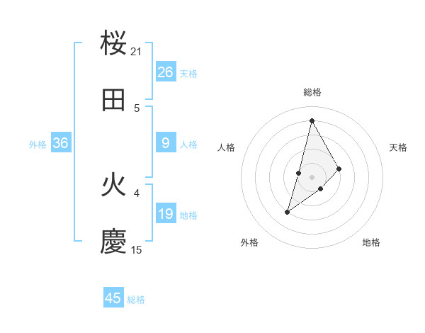 桜田 火慶さんを姓名の画数から五運を鑑定