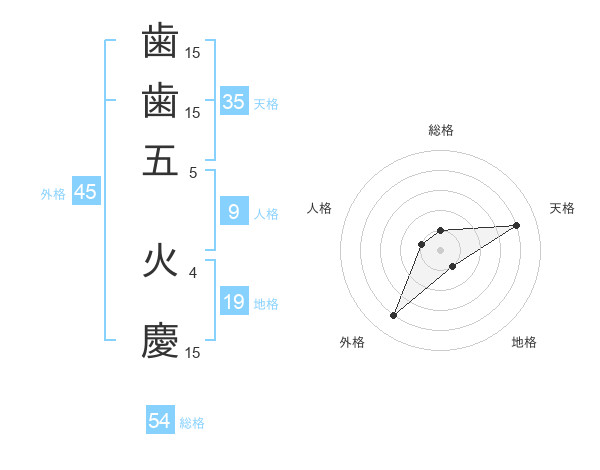 歯歯五 火慶さんの外格は45画の4点!