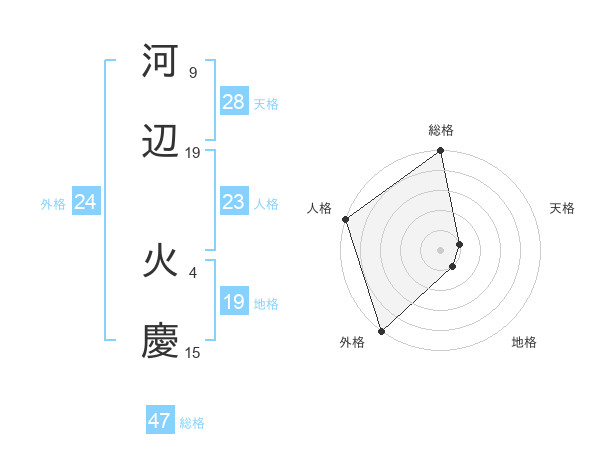 河辺 火慶さんの総格は47画の5点!