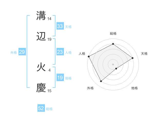 溝辺 火慶さんの総格は52画の4点!