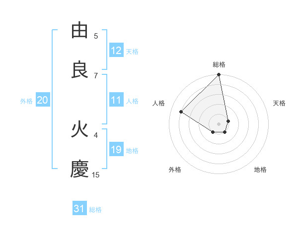 由良 火慶さんの総格は31画の5点!