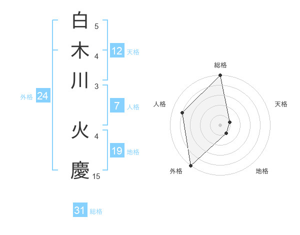 白木川 火慶さんの総格は31画の5点!