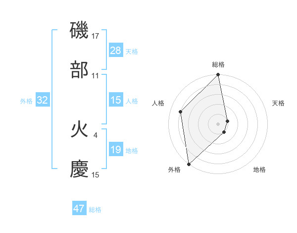 磯部 火慶さんを姓名の画数から五運を鑑定